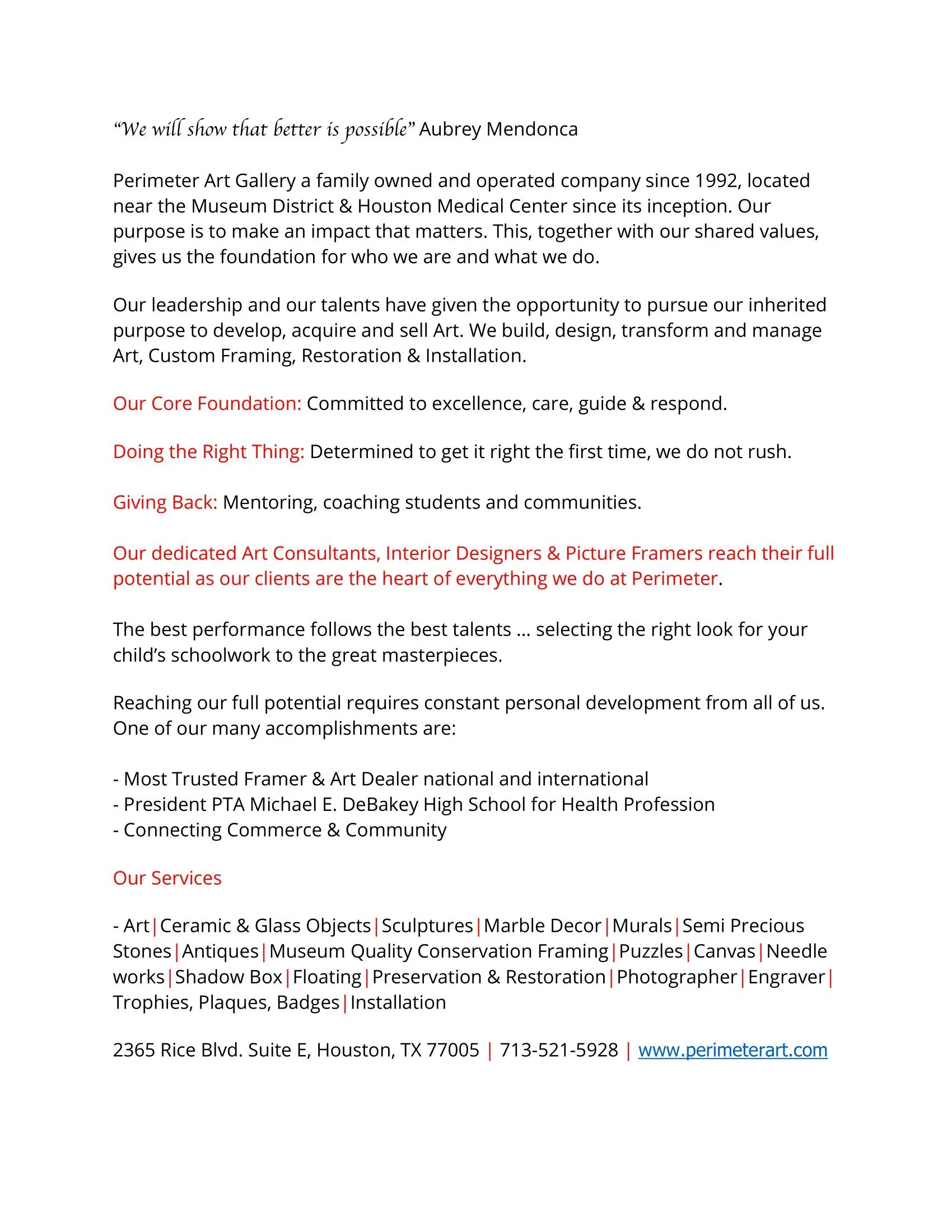 31 years in ❤️ Houston Rice Village 713.521.5928 Consultants, Art, Framing, Restore, Commercial & Residential Designers | Meets Style & Budget