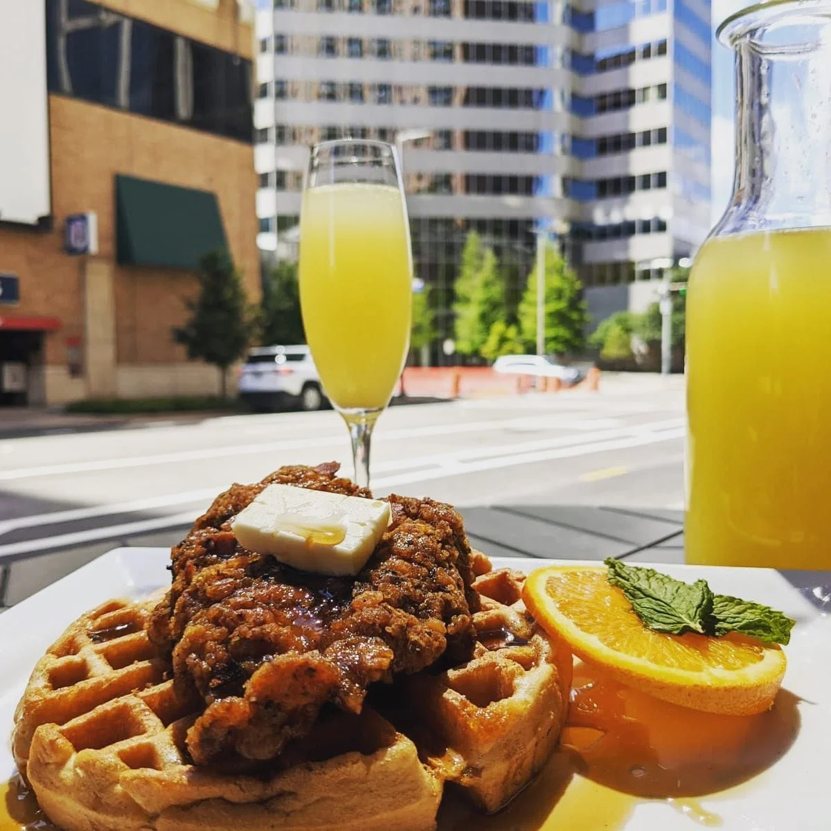 MKT Bar is a favorite for brunch in downtown Houston because the location is actually a music venue so being inside for brunch is a fun experience. The black pepper waffle has braised lamb & shaved Pecorino Romano for another brunch flavor that we do not see often! Whether after a late Saturday night or just a late start to the morning, MKT Bar is a great pick for Sunday brunch in Houston!