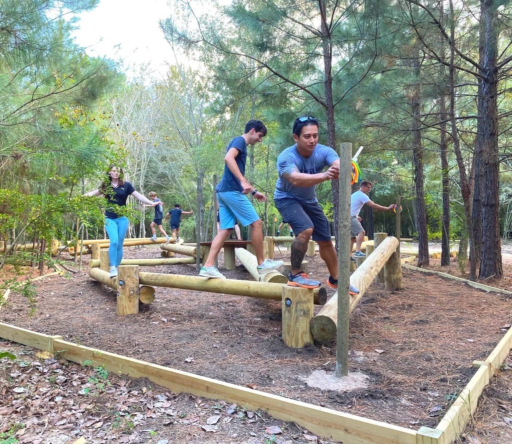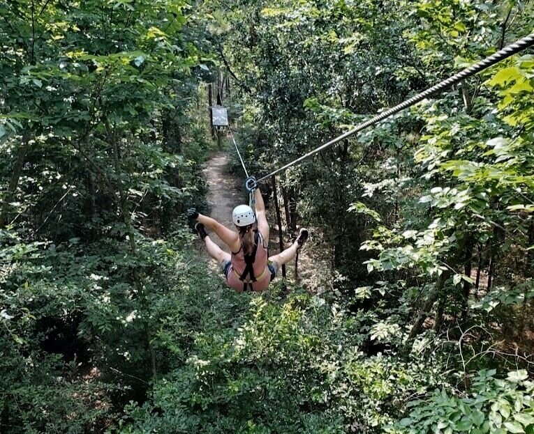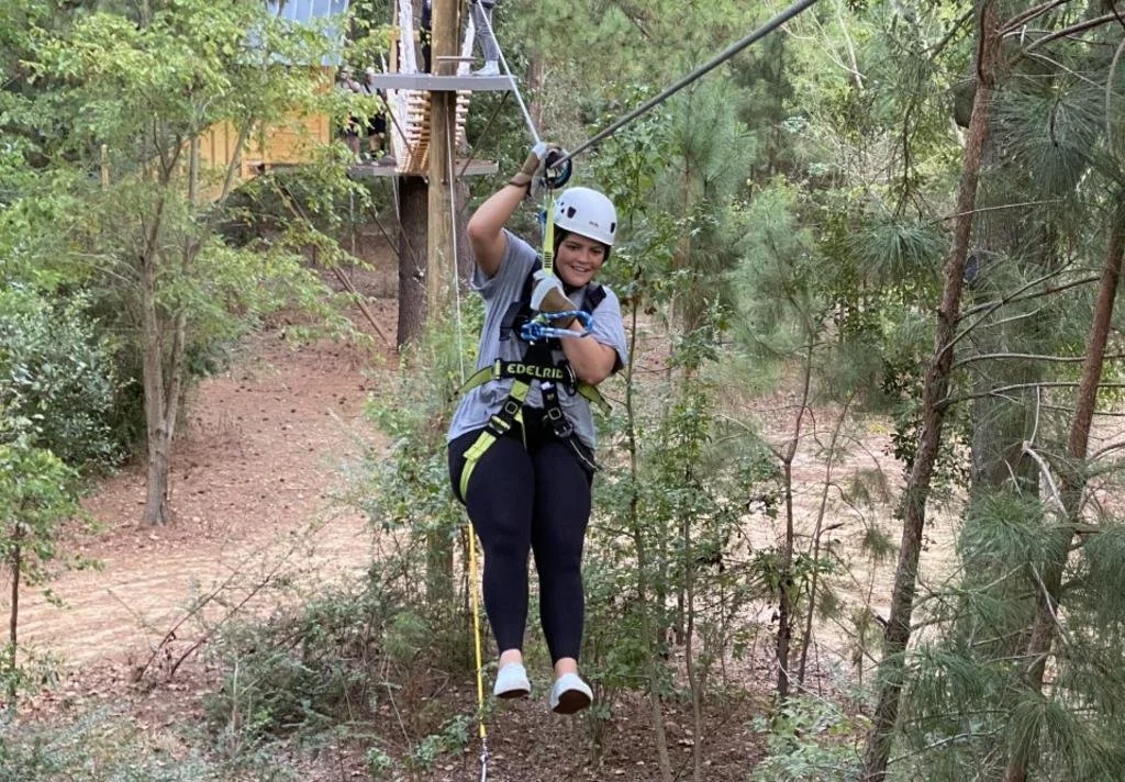 Experience the ultimate outdoor experience, Geronimo Adventure Park has something for everyone looking to get away, enjoy the great outdoors in a beautiful 13 acre wooded setting. Located just 30 minutes of downtown, in northwest Houston, Geronimo is a zipline adventure park where friends, families, teams and groups of all kinds unplug from electronics, participate in exhilarating outdoor activities, and enjoy each other’s company in a natural environment. The adventure park features three zipline courses, throwing lanes for axes, Ninja stars, knives, and darts, and outdoor rock climbing wall, and all kinds of grounds attractions such as a Ninja Obstacle Course, Hammocks & Swings, Log Jam Balance Challenge, Giant Seesaw, Box Hockey, Gaga Ball Pit, Lawn Games (Corn Hole, Ladder Ball, Horseshoes), Tetherball, Picnic Tables, Snack Shack, immaculate restrooms, and more! Host a party, team building activity or non-profit event at this outdoorsy escape in Houston.