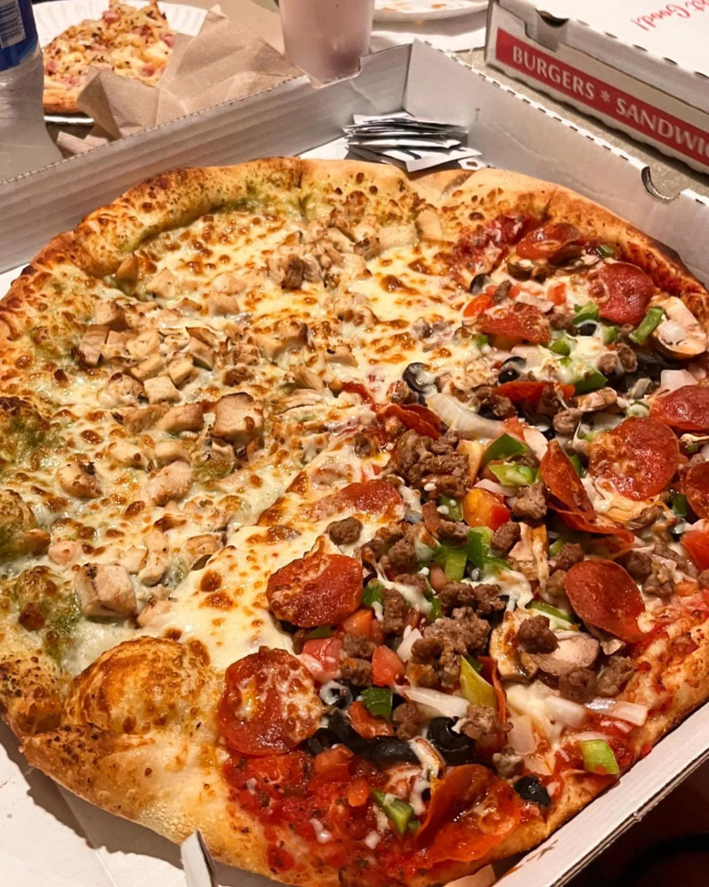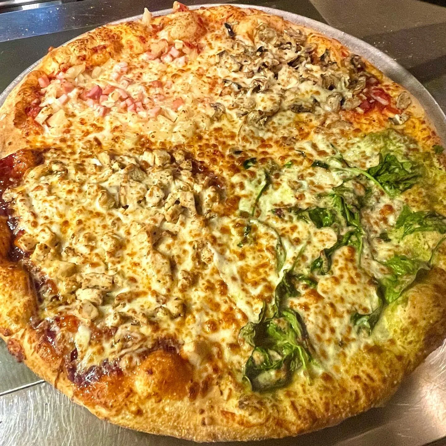 Frank’s Pizza serves whole pies, slices, lasagna, spicy wings, burgers, sandwiches, salads, desserts, and more. All are available for dine-in, take-out, or delivery. We pride ourselves in offering hand-tossed pizzas made with the freshest ingredients including daily, made-from-scratch dough and sauce. Our reputation has been built on serving the highest quality food at reasonable prices.