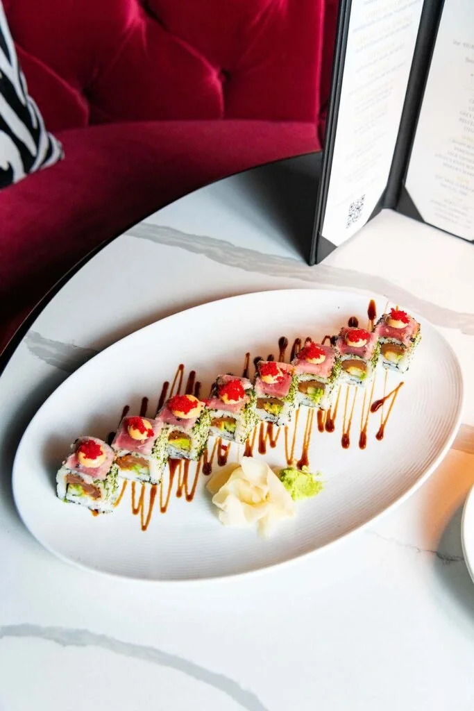 Savor exquisite delights like A5 Miyazaki Wagyu sushi with foie gras and truffle pearls, or indulge in our luxurious caviar offerings, from imported Beluga 000 to domestic American White Imperial. Our specialty cocktails, such as the innovative “Oh You Fancy Huh?” and the refreshing “Citrus Guava Breeze,” are crafted with precision and flair.