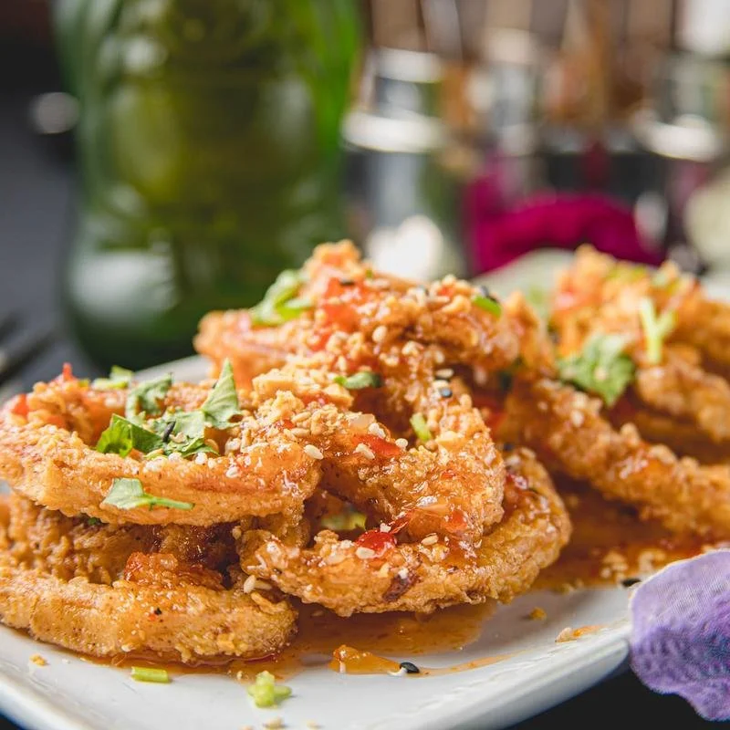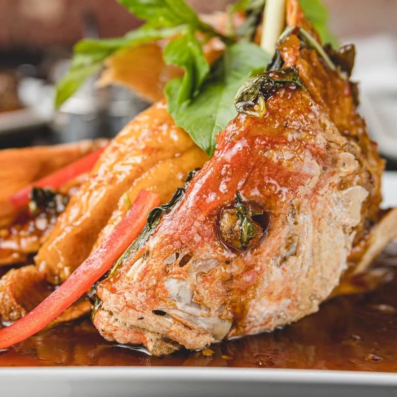 At Songkran, we value the robust, fresh flavors of traditional Thai cuisine, and deliver extraordinary tastes and textures, whether savory or sweet, in all the dishes we create. We use fresh ingredients— garlic, shrimp paste, thai chilies, lemongrass, galangal, coconut, rhizome, — and meld them together to create a sophisticated, subtle elegance in which every element is in perfect balance. We also grind fresh spices to enhance the clean, light, burst of zest to the food. We prepare everything in-house from scratch and only with the freshest of ingredients. We use fresh lychees, jackfruit, taro root, tapioca, bananas, and mangoes in our desserts.