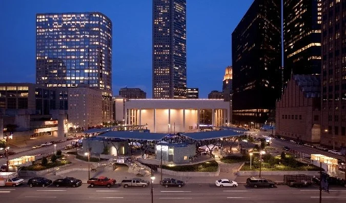 Jones Hall is stunning with its curving travertine marble facade, an exterior rectangle of eight-story columns, and a brilliantly lit grand entrance. The classically elegant interior dazzles visitors. Today, Jones Hall is home to Houston Symphony and the Society for the Performing Arts. More than 400,000 visitors attend some 250 events annually. The ambiance of the hall is enhanced with its vibrant red velvet seating, golden teak walls, and a sweeping loge that seems to reach for the stage.